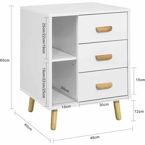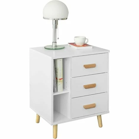 Der schicke Farbmix aus Weiß und hellbrauner Holzoptik fügt sich in viele Einrichtungsstile bestens ein. Die schrägen Beine verleihen dem Nachtschrank das gewisse Etwas.