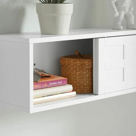 Diese Wandgarderobe besticht vor allem durch die beiden Schiebetüren, die sanft auf 2 Schienen hin und her gleiten. Dahinter können Sie Gegenstände ordentlich verstauen.