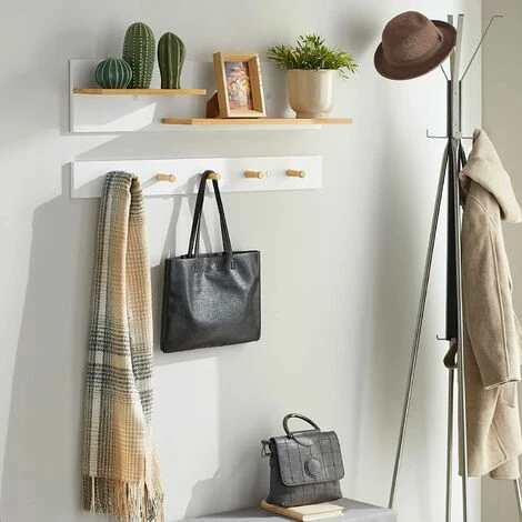 Die Ablagen und Haken dieser Wandgarderobe besteht aus hochwertigem Bambus, um Robustheit und Langlebigkeit zu gewährleisten. Sie eignet sich perfekt zum Aufhängen Ihrer Mäntel und Jacken.