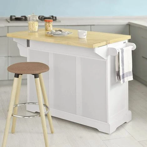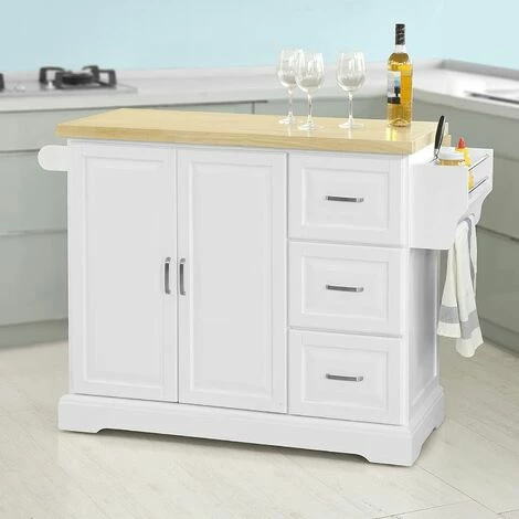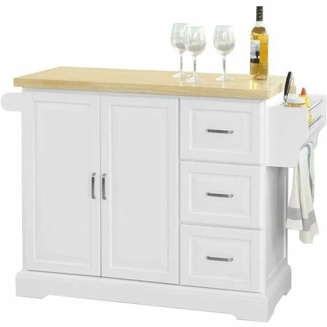 Ausgestattet ist dieser praktische Küchenwagen mit drei geschlossenen Schubladen, einem Geschirrschrank in dem Sie viele Utensilien verstauen können.