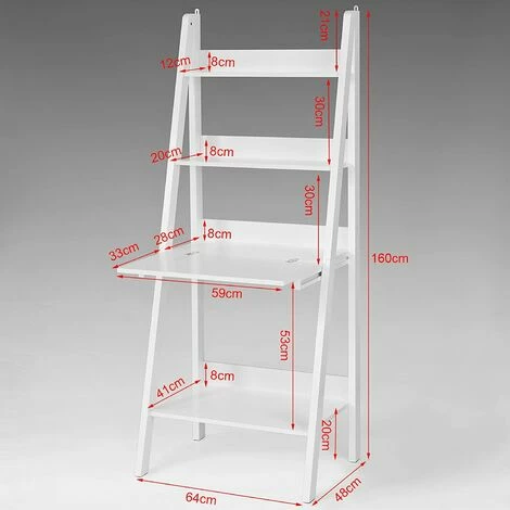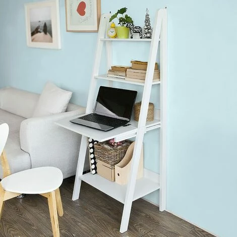 Dieses moderne Leiterregal mit integrierter Schreibtischplatte ist nicht nur ein echter Blickfang sondern bietet eine Menge Abstellfläche für Bücher, Dekoration, Laptop usw.