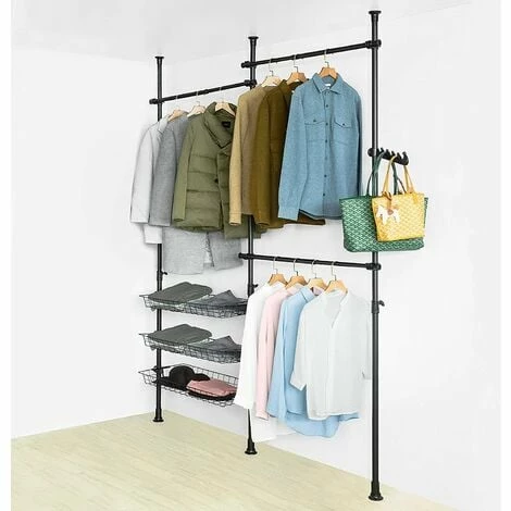 - Danke der 3 stufenlos verstellbaren Kleiderstangen bietet dieses System viel Platz für Kleider, Mäntel, Oberteile, Hosen oder Hemden.
