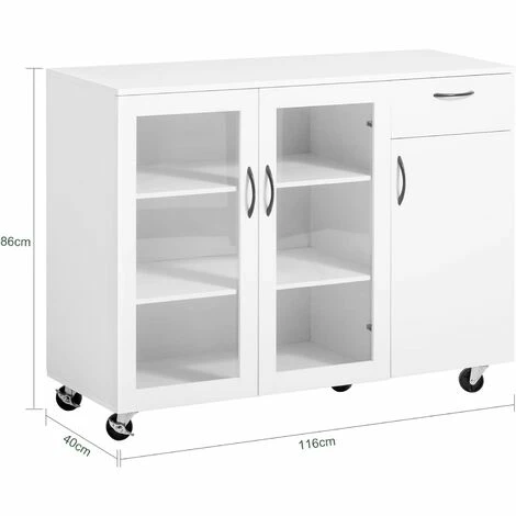 Mit 3 Türen, einer Schublade können Sie Ihr Küchenzubehör einfach aufbewahren und organisieren. Dank der transparenten Glastüren können Sie ihn auch für Dekorationsstücke ausstellen.