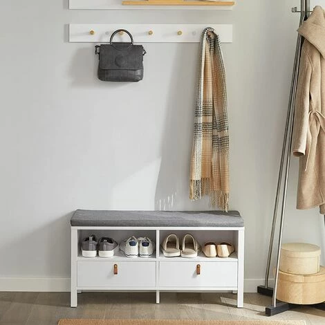 Die Bank mit 2 Schubladen bietet reichlich Stauraum für Schuhe, Boxen, Bücher, Zeitschriften usw.
