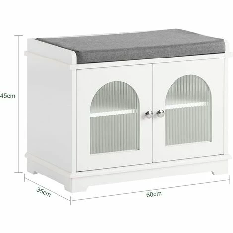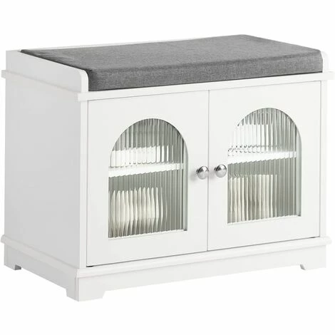 - 2 Ablagen hinter den Türen lassen sich in drei Höhen verstellen, so dass verschiedene Schuhe und Gegenstände in dieser Schuhbank verstaut werden können.