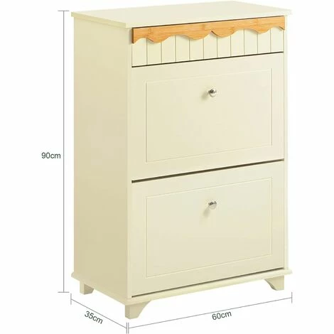 Durch 2 Kippfächer mit 4 Ablageflächen im Inneren, können Sie Ihre Schuhe ordentlich verstauen. Die Höhe der Schuhfächer können durch herausnehmbare Böden verstellt werden, somit haben auch höhere Schuhe hier Platz.