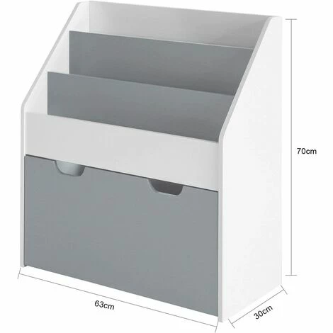 Mit den 3 Ablagefächern und einer großen herausnehmbaren Spielzeugtruhe in der unteren Etage, haben Sie reichlich Stauraum für Ihre Bücher, Zeitschriften, Spielsachen oder andere Gegenstände. Die Höhe ist auch optimal, damit Ihre Kinder die Bücher einfach einlegen und entnehmen können.