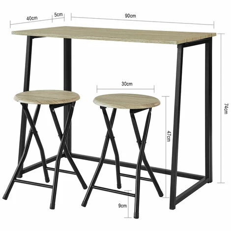 Die Sobuy Essgruppe besteht aus einem Klapptisch und zwei passenden Hockern und ist so eine platzsparende Lösung für bis zu zwei Personen.