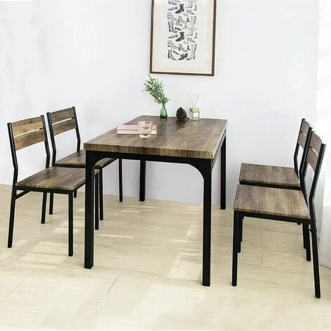 Die Sobuy Essgruppe besteht aus einem Tisch und vier passenden Stühlen und ist so eine platzsparende Lösung für bis zu vier Personen.