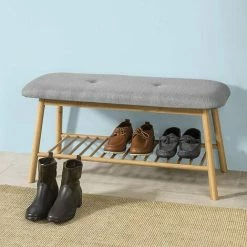 Neu 😀 SoBuy FSR24-K-HG Schuhbank Mit Gepolsterter Sitzfläche Bettbank Garderobenbank Sitzbank Schuhregal Bambus BHT Ca.: 91x45x34cm 🛒